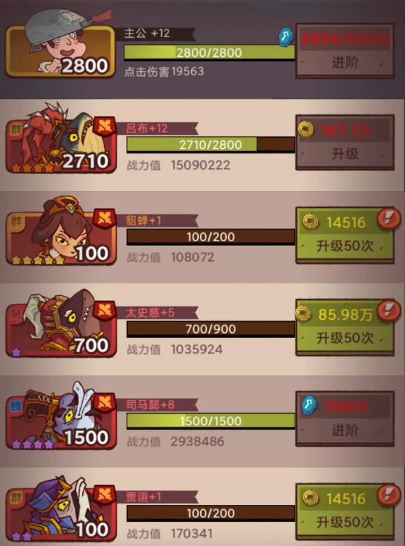 【吕布】:主C , 装备等级拉满 ,有赤羽上赤羽,一号位抗伤害(一定要放在一号位),boss会一直普攻吕布,吕布开局不久就可以触发心魔被动,低于30%血量增伤120%,这伤害是不容小觑的。(俱乐部科技战士攻击力优先拉满)
