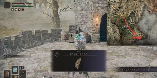 5、然后我们到达海德要塞后往上走,爬上楼梯即可看到箱子,打开箱子我们就可以拿到迪可达斯符节(左)。
