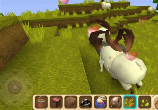 3、接着玩家再去找山羊们,并拿出小麦(小麦种子)将其吸引过来。