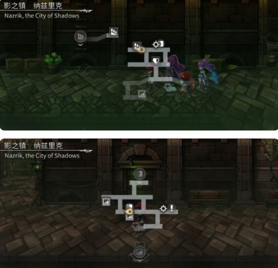 图中有门形隐藏通路,需要道具解锁道路才可通过,包括右方偏上的“地图”和左方偏上的东国防具。