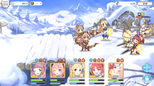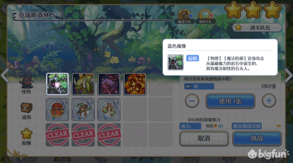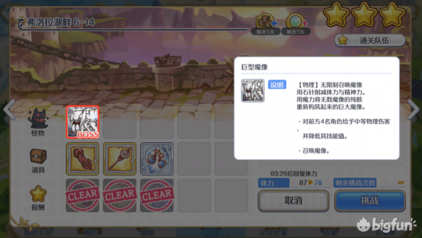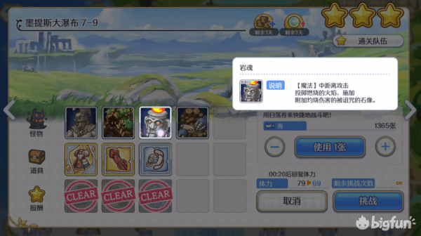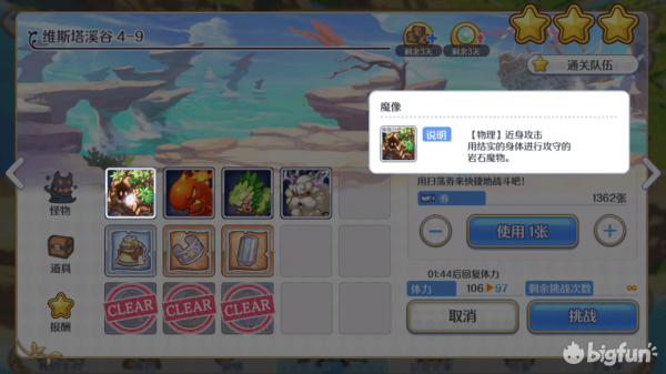肉肉的石头人出现,这个时候需要我方爆发角色了。暴击和法师单位,基本可以在这里上场了。一顿爆发操作,即可通关!