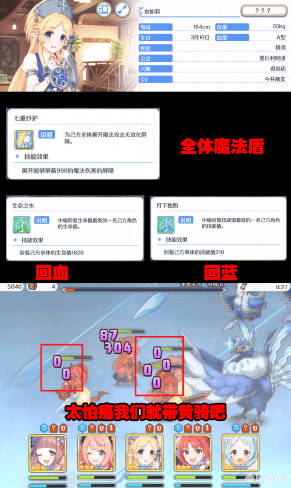 黄发骑士由加莉的技能非常香,回血回蓝这样的辅助,谁不喜欢?由于技能效果随等级增加而增加,抵抗的魔法伤害也是越来越高,而且每个队友独立计算抵抗值哦。面对大量魔法伤害时,黄骑的魔法盾能保证我们的血量安全!