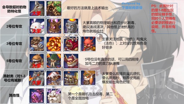 大量野怪,配合超多法师的三面。本关核心是空花和黄骑,由于我太怕痛就带上了黄骑,魔免配合法T不仅如此最好再带个控,没有多的位置,只能前排建议羊驼是最好的,本关布丁扛不住。