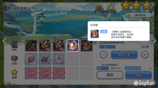 偷后排的猴子来了!!!无视前排,专打后排脆皮,这如何是好?那后排全下了,只上前排硬抗刚过去?其实这关继续使用空花就可以完美解决猴子的问题,空花的嘲讽,可以让猴子强行打她,这下后排安全!即可通关!