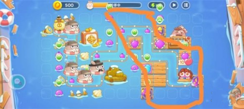 6.把左边画圈位置水雷撤掉,然后抽奖,打建筑,这里开始就需要一点点运气了,这关难的不是金萝卜是全清,慢慢的打掉周围的就行了,金萝卜不用管自己就拿到了。
