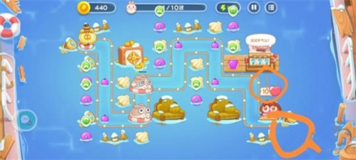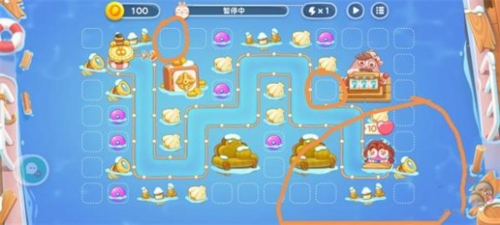 7.总之雷用处是占位置,来保证炮塔大概率随机到理想位置,所以七波前都保持一级,多的钱继续安水雷到空白处。炮塔间要保证能互相照应,以防偷偷兔,水雷没啥事。