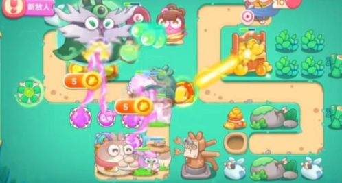 5、有钱就在地图上种炮塔,直到BOSS血量空了我们就赢了,注意有泡泡就要点掉哦。
