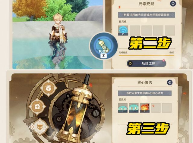 完成第一步后,紧接着还需要两步,分别是【元素充能】与【核心激活】,元素充能很好理解,就如同每周一次的【参变质量仪】,不过【炉心机造】的元素充能需要前往特定场所用特定的元素才能充能,达到100%就能进入第三步【核心激活】,击败指定的敌人就能获得炉心的动力,完成这三步后就能解锁【自由制作】,自由制造与剧情制作不同的点在于,自由制造可以进行第四步。