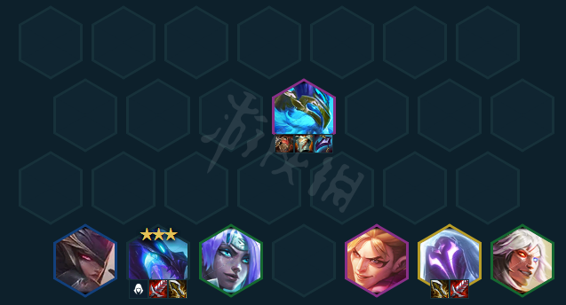 8人口之后找派克男刀,开出6刺4幽影龙。奥恩消化肉装,男刀和派克捡垃圾。站位上赛芬需要和另外一个副c一人站一边。攒钱上9之后如果凯隐和皎月质量比较差也可以只开4刺,拿高费功能类棋子来代替。补巴德和奶妈都可以。如果没有赛芬出水银的话需要仔细观察调整站位,比较怕控制。