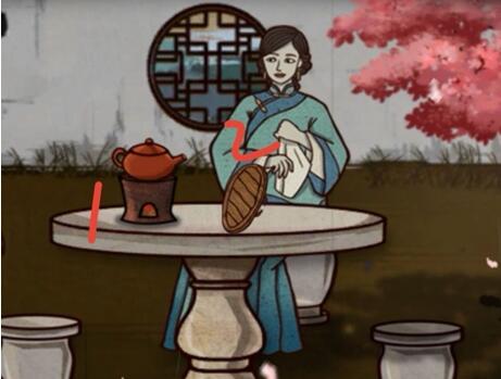 4、接着将杯子给男主,藤条与桌上的盘子组合成⑥盾牌,盾牌给平刘海女生(如图2的位置)。