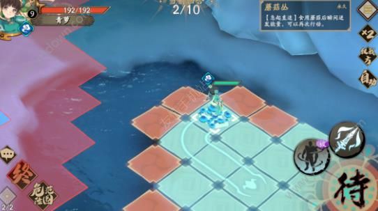 2、第二回合:青罗踩着蘑菇飞到了这个位置。
