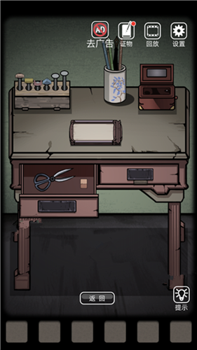 2、地毯右边有一个镜子碎片,在镜子场景中,第一个抽屉密码543162,拿到剪刀、砝码1,抽屉上拿到画笔。