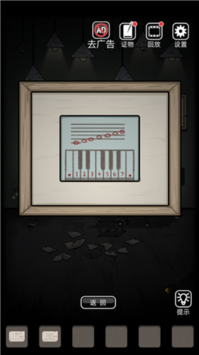 10、钢琴场景,根据墙上的线索,红点之后是1234567红点,根据之前的音符5534553弹奏,出现新的音符。