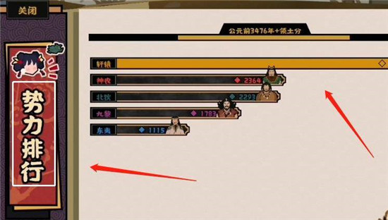 3、然后玩家就可以在弹出页面中看见自己的势力排行。