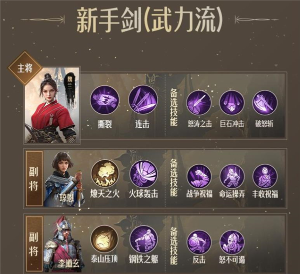 阵容评价:该阵容比较适合开荒起步,3位英雄都是可以免费获得的,发展方面也比较广。