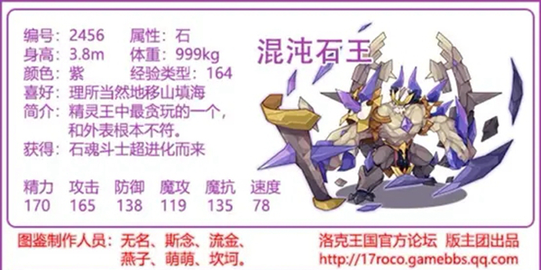 混沌石王是洛克王国中一个物攻系的精灵,性格方面最好是可以提升攻击方面的。