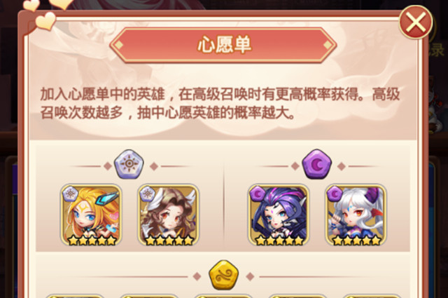 其中放入的英雄可以有着更高的概率获得,高级召唤的次数越多,抽中的概率越大。