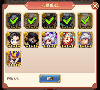 心愿单这个游戏内容中玩家可以每个属性都选择5个角色放入,光暗可以选择两个。