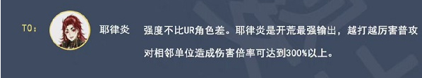 前期最强输出,越打越厉害,普攻对相邻单位造成伤害可以到达300%。