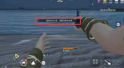 3、当出现瞄准点水太浅时,可以更换位置.