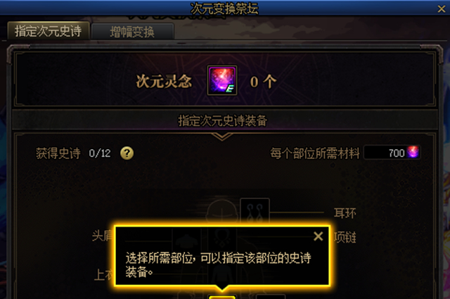 这个次元变换祭坛可以消耗700个材料来指定该部位的ss装备。