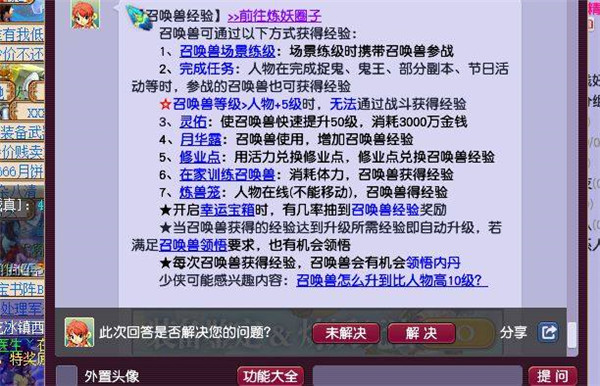 宝宝经验获取途径:开箱子、任务、炼兽笼、修业点、家里训练、月华露、灵佑。
