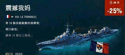 在游戏《战舰世界》中,法国驱逐舰可怖号机器翻译成太恐怖了,
