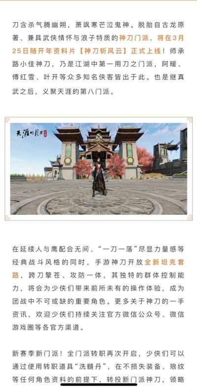 1、随即一起上线的还有新门派神刀,开放全新的坦克套路,