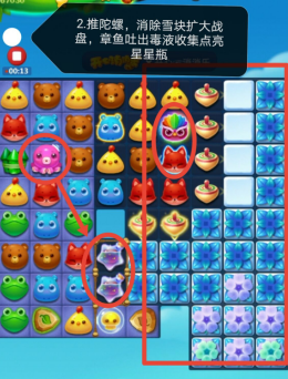 2、向右推陀螺,扩大战盘,左侧章鱼吐出毒液继续收集毒液点亮星星瓶