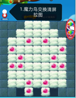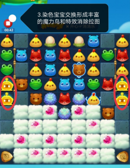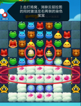2、击打鸡窝,消除云层拉图的同时,激活两侧的染色宝宝