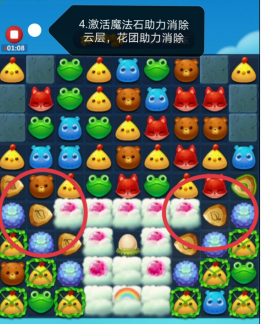 4、激活魔法石向下击打云层,同时花团助力消除云层拉图