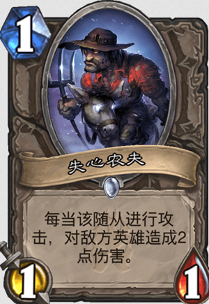 农夫牧的卡组思路和农夫术其实差不多,只不过由于有了缩小射线工程师的缘故,能令失心农夫攻击变成0点打不死任何怪以此来确保斩杀,但是过牌能力稍显逊色,不过借助洞察,暗影视界与女巫森林吹笛人,还是能够定向检索到你所需要的核心卡的。