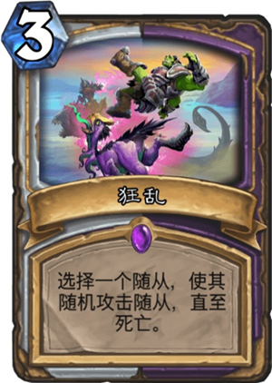 双亡语者的情况下,第一个免疫给失心农夫,第二个给一个友方随从,单狂乱=60点伤害,双狂乱=120点伤害。