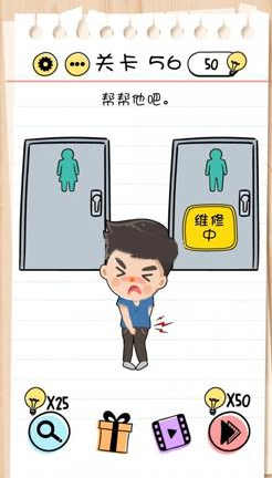 Brain Test第56关怎么过?第56关的题目是:帮帮他吧。其实这一道题目很简单,在游戏中可以看到一个小男孩想要上厕所,但是男厕所现在正在维修,玩家需要将女厕所上的裙子移到男厕所上即可。下面小编就为大家带来了通关攻略!
