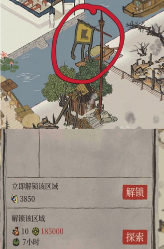 首先我们需要满足条件来解锁新区域,解锁之后点击灰色地块的破房子就能显示可以探险。