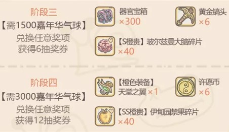 四档奖励:推荐选“橙色装备-天堂之翼”和“SS橙贵”,如果玩家都有这些,就选许愿币。