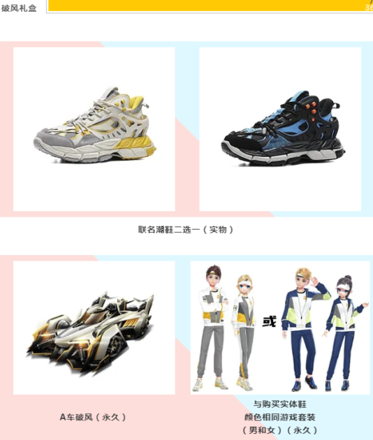 4、这次联名玩家可以选择破风礼盒和斩浪礼盒,购买任意礼盒都会赠送永久A车破风以及永久同款游戏套装。