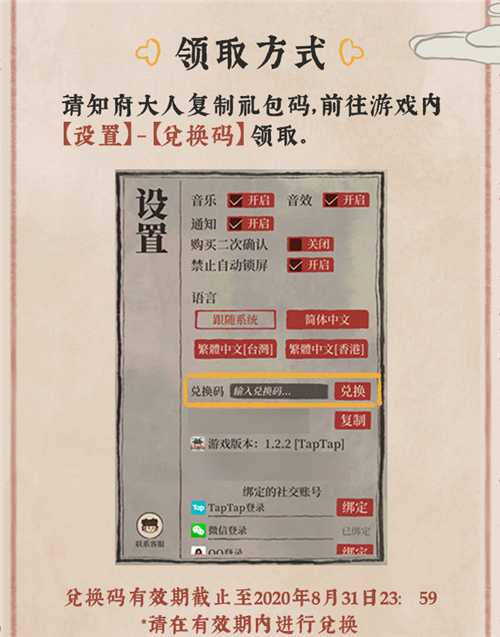 1、玩家需要进入设置界面,点击兑换按钮,输入正确的兑换码就能兑换奖励了。