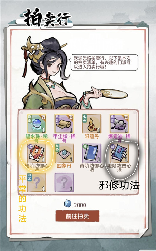 1、玩家可以在拍卖会购买邪修的书,如图。