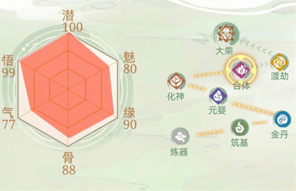 3、六维属性“潜悟气骨缘魅”里面,潜力是决定弟子修炼能达到的最高境界。