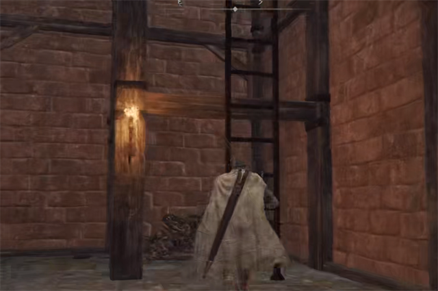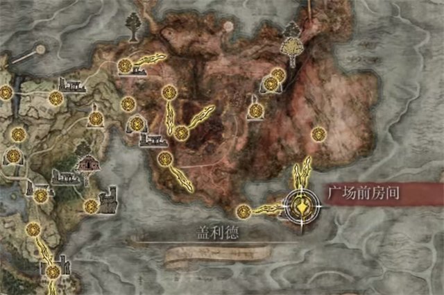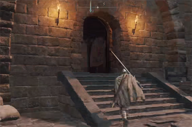 1、焰形大剑的位置在【广场前房间】南方的楼上面;