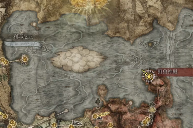 1、石像鬼黑戟的位置在【野兽神殿】的门口,在下图中可以看见野兽神殿的位置;
