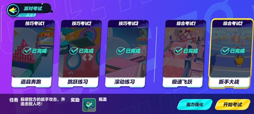 3、包括有道具奔跑、跳跃和滚动练习,还有极速飞跃以及扳手大战的综合考试。