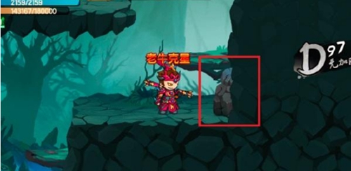地图进入的位置,前方有一块半漏的石头,将其炸掉即可进入,到最右上角的位置可以跳下去,到最右上角的位置可以跳下去,再往左走,向上跳就可以出去了。