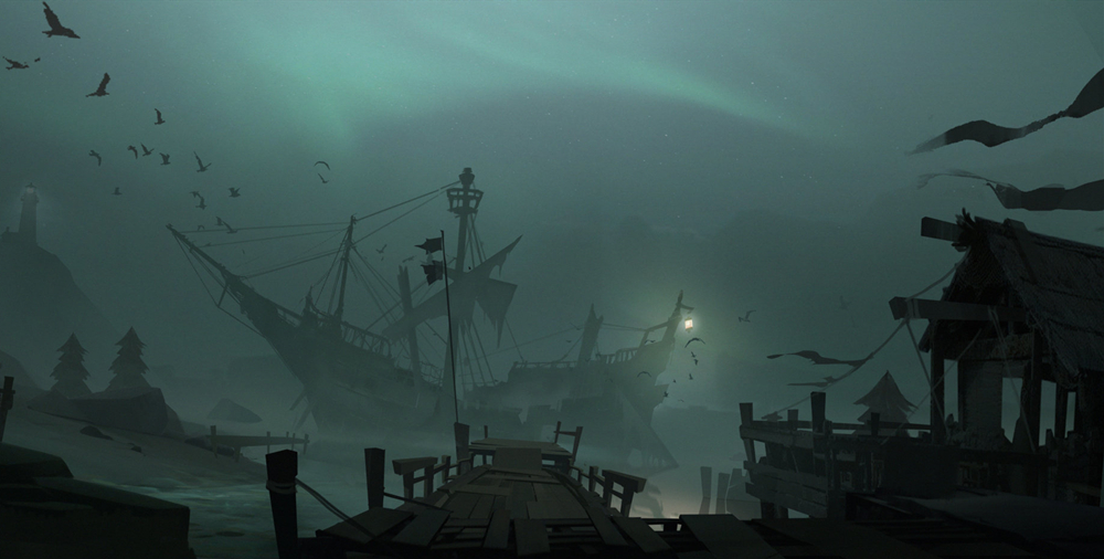在小船附近有一大块空地,边上还有风车,地窖就在两者之间。