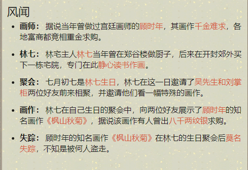 天涯明月刀手游名画寻踪案讲的是:林宅里丢失了一幅珍贵的名画,不知何人所为,名画寻踪案证据是什么?下面小编给大家带来天涯明月刀手游区名画寻踪案证据和最后凶手介绍,一起看看吧。