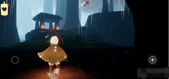 2、接着我们往前走看到小亭子,右侧有一个隐藏图入口,需要收集雨林的八个先祖后方可点火打开。