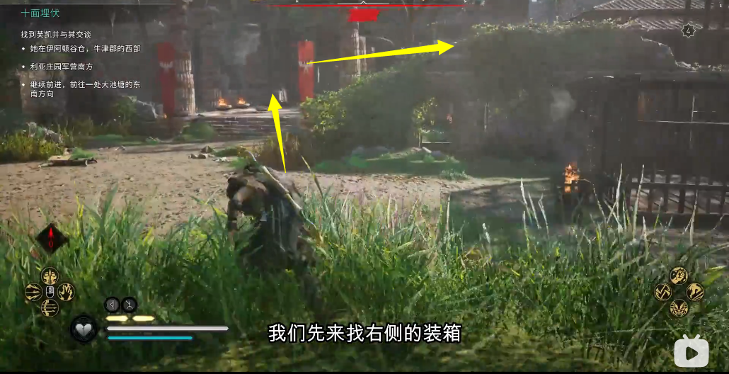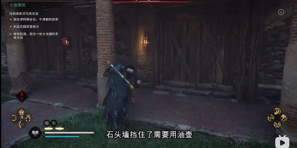 1、装备所在房子后面的房间有油桶,我们先推一下货架,然后从这个窗户过去;