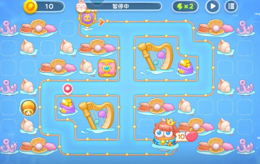 6、在左下角建造一个鱼雷塔对潜水的兔子进行攻击,左侧中间偏上的地区建造一个水雷塔。
