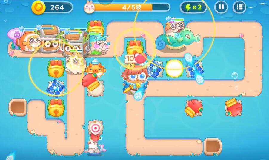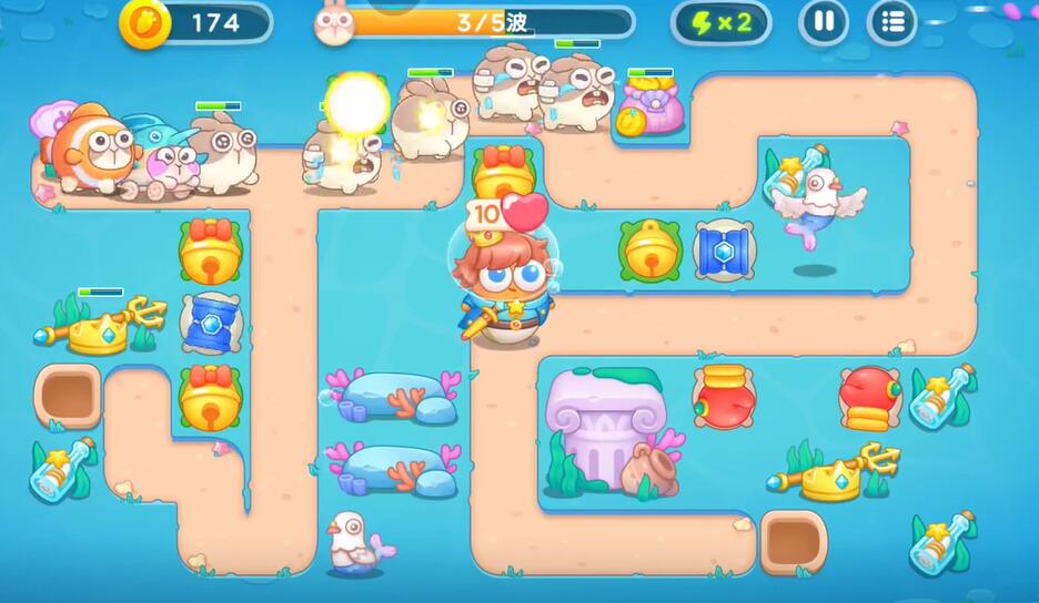 7、在右侧的道路和左侧的前往传送口的道路上建造更多的防御塔进行输出,清理所有的兔子即可完成本关的挑战。